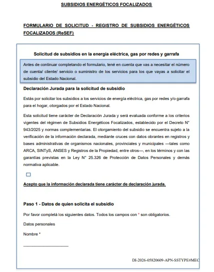 ReSEF: Criterios y control de subsidios