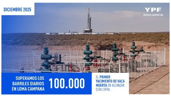 En el camino del salto de producción que Vaca Muerta requerirá alcanzar este año para abastecer la creciente disponibilidad de transporte que ofrecerá el VMOS, YPF acaba de anunciar que en diciembre el bloque de Loma Campana, que opera en asociación con Chevron, superó el hito de los 100.000 barriles diarios de shale oil.